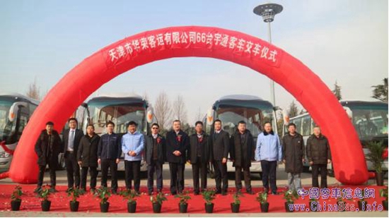 1月26日,66輛宇通ZK6816H5Y公路客車正式交付天津市華榮客運(yùn)有限公司(以下簡(jiǎn)稱“華榮客運(yùn)”),華榮客運(yùn)總經(jīng)理趙國(guó)華,宇通客車營(yíng)銷副總監(jiān)王文韜等領(lǐng)導(dǎo)出席交車儀式。