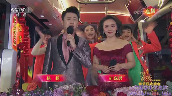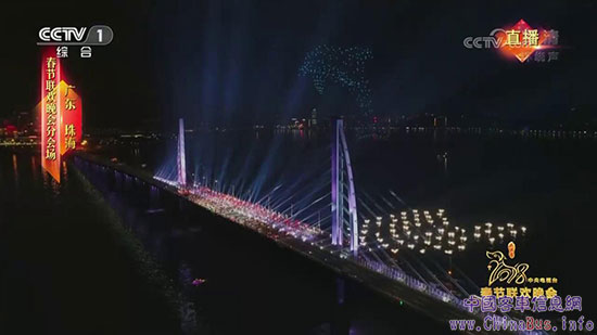 在春晚珠海分會(huì)場(chǎng)的港珠澳大橋上,央視主持人在阿波龍上主持節(jié)目
