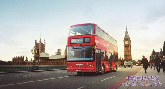 倫敦街頭的比亞迪紅色純電動(dòng)雙層大巴