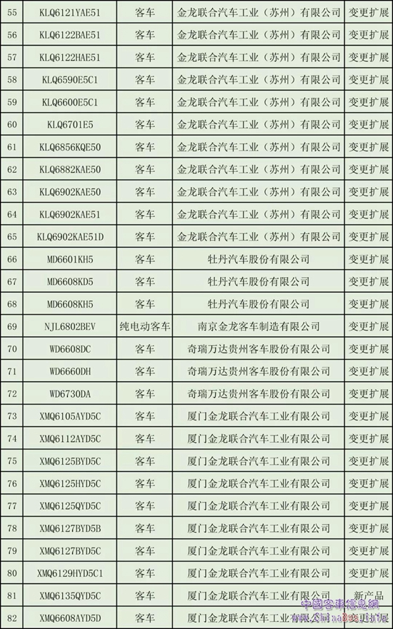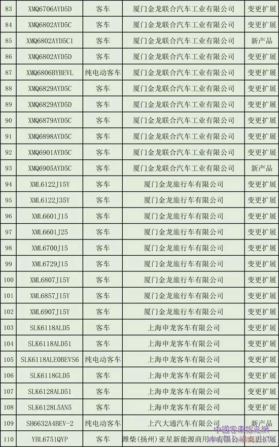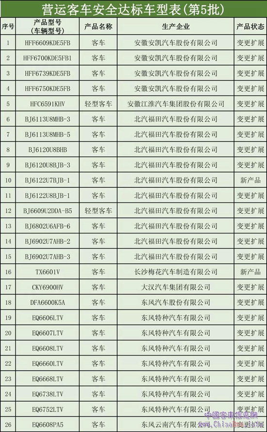 以下為《營(yíng)運(yùn)客車安全達(dá)標(biāo)車型(第5批)》公示: