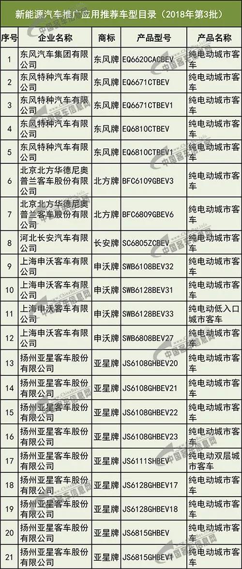 附:《新能源汽車推廣應用推薦車型目錄(2018年第3批)》(客車部分)