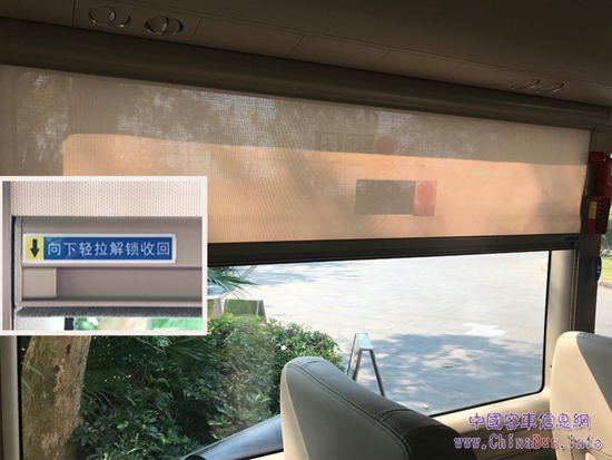 同時(shí),宇通T7的側(cè)窗配備了與高鐵列車一樣的遮陽簾,可以隨意調(diào)整遮蔽高度,并支持一鍵式回收。相比傳統(tǒng)的織物材質(zhì)窗簾,使用更加方便,并且有效地改善了車廂內(nèi)的整潔程度。