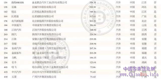 汽車行業(yè)品牌分部