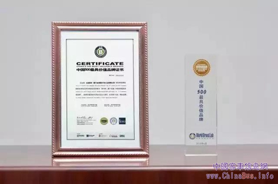 金龍汽車集團旗下企業(yè)入選“中國500最具價值品牌”
