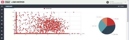 這是車速、牽引踏板的數(shù)據(jù),通過這些密密麻麻的紅點(diǎn)可分析駕駛員的駕駛習(xí)慣,記錄并糾正不當(dāng)?shù)鸟{駛行為。數(shù)據(jù)分析表明,通過“云智通”規(guī)范駕駛員行為,平均油耗可降低5%,平均一年節(jié)約油耗開支近6000元。