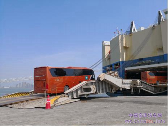 5月28日,110輛豪華大巴裝船啟航沙特