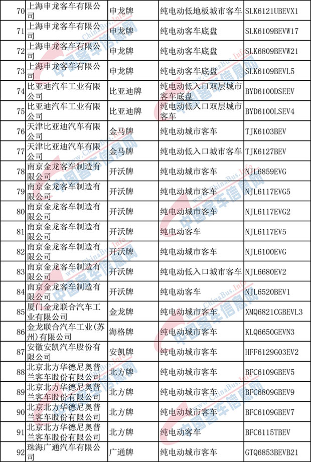 第310批《道路機(jī)動(dòng)車輛生產(chǎn)企業(yè)及產(chǎn)品公告》中新能源客車產(chǎn)品: