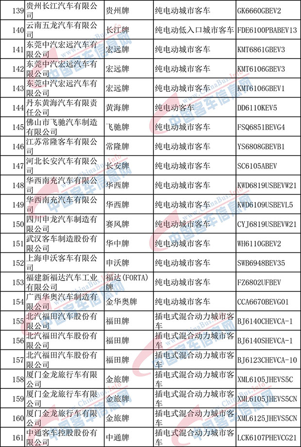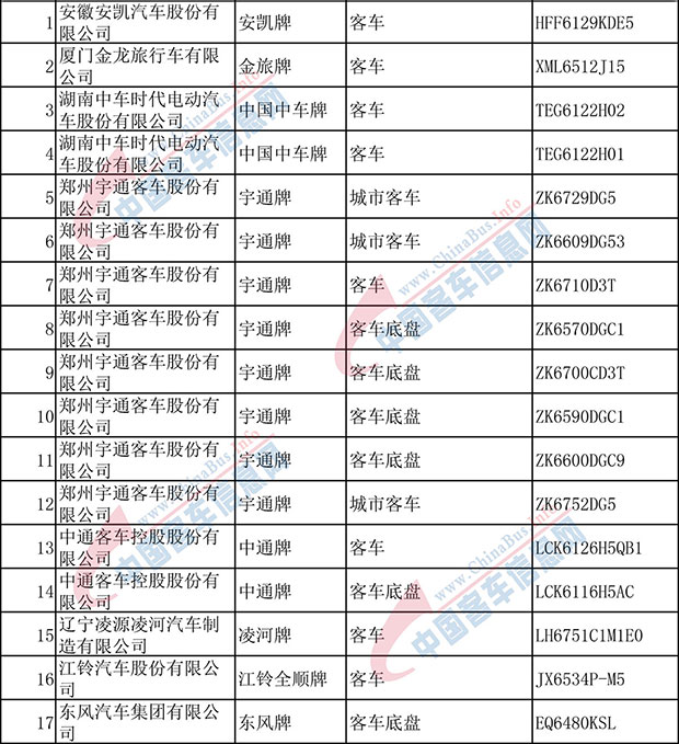 第310批《道路機(jī)動(dòng)車輛生產(chǎn)企業(yè)及產(chǎn)品公告》中傳統(tǒng)客車產(chǎn)品: