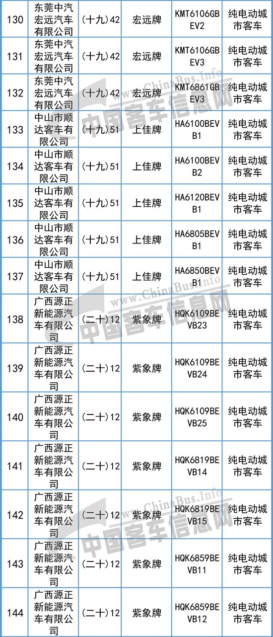 以下為《新能源汽車推廣應(yīng)用推薦車型目錄》(2018年第8批)(客車部分)