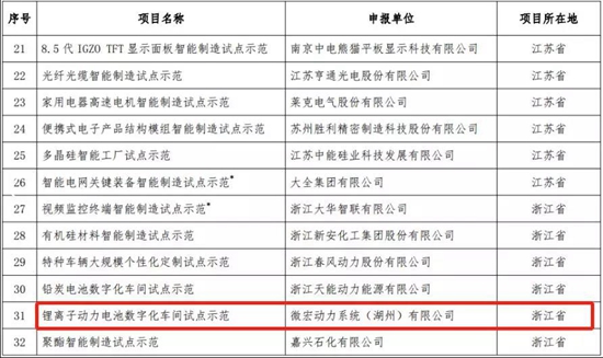 7月31日,工信部發(fā)布《2018年智能制造試點(diǎn)示范項(xiàng)目公示》,共有99個示范項(xiàng)目上榜,上榜企業(yè)中僅有兩家動力電池企業(yè),其中微宏動力申報的“鋰離子動力電池數(shù)字化車間試點(diǎn)示范”成功入圍。