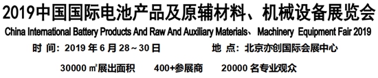 各有關(guān)電池企業(yè):2019年6月28~30日,2019中國(guó)國(guó)際電池產(chǎn)品及原輔材料、機(jī)械設(shè)備展覽會(huì)將亮相北京亦創(chuàng)國(guó)際會(huì)展中心,作為全球最大的電池展之一,本屆展會(huì)將吸引來(lái)自全球?qū)⒔?00家企業(yè)參展,期待您的蒞臨。