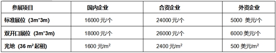 標(biāo)準(zhǔn)展位: (3M×3M)展位(包括三面圍板、楣板、一桌二椅、220V電源插座、地毯、清潔費(fèi)等)。