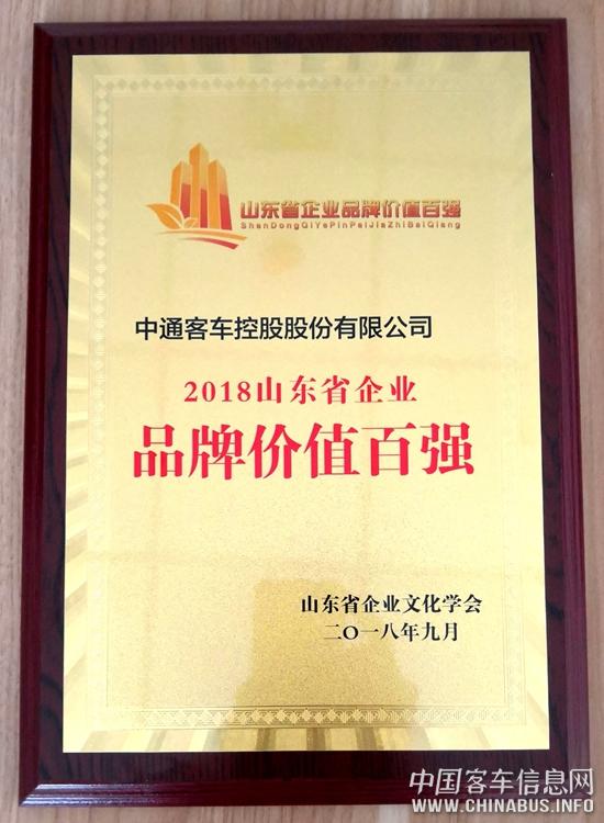 中通客車連續(xù)三年入圍“山東省企業(yè)品牌價值百強”
