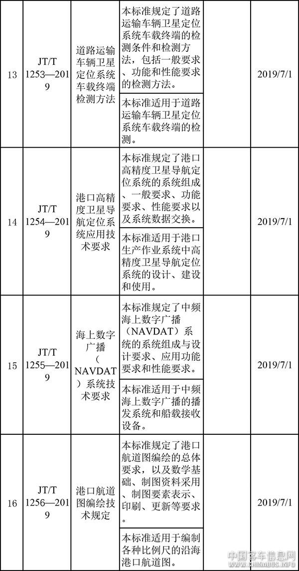 附:發(fā)布的35項(xiàng)交通運(yùn)輸行業(yè)標(biāo)準(zhǔn)的編號(hào)、名稱、主要內(nèi)容等一覽表