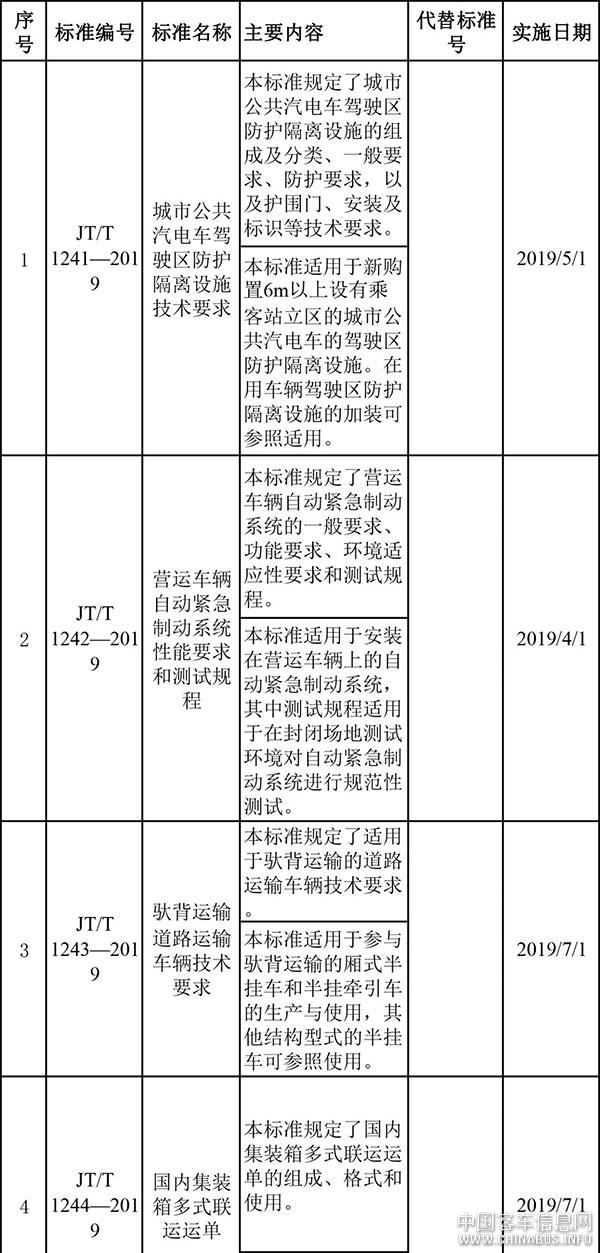 3月18日,交通運(yùn)輸部發(fā)布了《城市公共汽電車駕駛區(qū)防護(hù)隔離設(shè)施技術(shù)要求》等35項(xiàng)交通運(yùn)輸行業(yè)標(biāo)準(zhǔn)(2019年第3批)。發(fā)布的標(biāo)準(zhǔn)均為推薦性標(biāo)準(zhǔn),標(biāo)準(zhǔn)由人民交通出版社出版,并在中華人民共和國(guó)交通運(yùn)輸部政府網(wǎng)站公告。