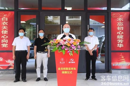 9月30日,廈門金龍聯(lián)合汽車工業(yè)有限公司與廈門燕之屋生物工程股份有限公司在廈門市思明區(qū)梧村街道社區(qū)衛(wèi)生服務(wù)中心共同舉辦了“金龍移動核酸采樣車”交車儀式。廈門市衛(wèi)健委應(yīng)急辦主任王德猛,思明區(qū)衛(wèi)健局局長雷樹民,梧村街道社區(qū)衛(wèi)生服務(wù)中心主任陳文普,燕之屋董事長黃健,金龍汽車集團(tuán)黨委副書記、副董事長、金龍客車董事長謝思瑜等出席。