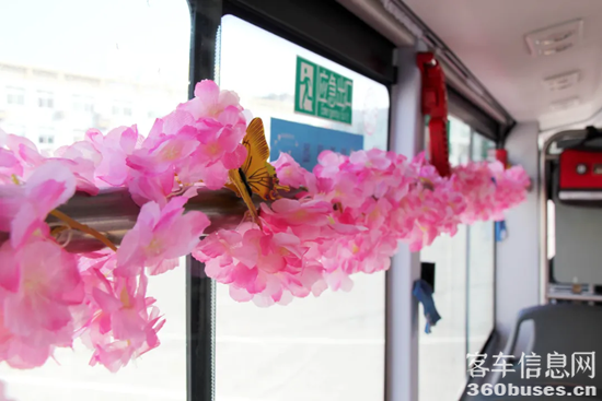 金龍“櫻花接駁車”以粉白櫻花為主色調(diào),配以海經(jīng)藍(lán),錯(cuò)落有致的櫻花點(diǎn)綴在車身,好似繁星點(diǎn)點(diǎn),宛若“櫻”約而來(lái)。