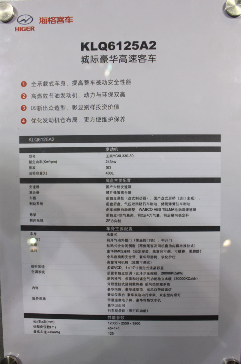 海格12米混合動(dòng)力城市客車KLQ6129GHE1,配備歐III發(fā)動(dòng)機(jī),整車綜合排放可達(dá)到歐IV客車排放標(biāo)準(zhǔn);該車是基于海格客車成熟的KLQ6129G產(chǎn)品平臺(tái), 采用具有海格自主知識(shí)產(chǎn)權(quán)的HIGER-10控制器,結(jié)合國際先進(jìn)控制技術(shù)和國內(nèi)先進(jìn)的電控技術(shù),搭載混合動(dòng)力系統(tǒng),通過了嚴(yán)格的測(cè)試,歷時(shí)兩年研發(fā)成功。節(jié)油20%以上,單車使用期內(nèi)可減少二氧化碳排放243噸,NOx (氮氧化物)減少約40%,PM(微粒,碳煙)減少約30%,在車輛能耗比、節(jié)能減排及經(jīng)濟(jì)性等方面處于行業(yè)領(lǐng)先水平。 |