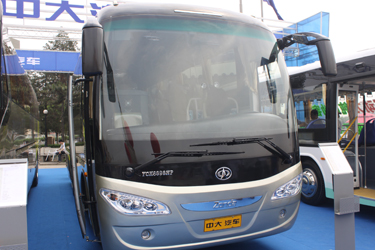 YCK6128HGN型客車是中大汽車2010年最新研制的一款12米級豪華旅游客車,整車造型在延續(xù)中大B7系列飄逸風格的同時,增加了更多的新元素,充滿歐美風情的前臉設計,結合充滿力度感的浮雕式飄帶,彰顯尊貴本色。該車采用CATIA進行全三維設計模擬計算,對整車骨架、蒙皮等進行動靜態(tài)有限元分析,在加強車身強度的同時,降低車身整體重量,流線型車身降低了整車的空氣阻力,結合底盤總成的精確合理匹配,使整車油耗更低,經(jīng)濟節(jié)能。