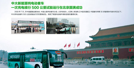 中大汽車集團歷經12年研發(fā)集成,先后投入11億元,擁有完全自主知識產權的純電動客車以其21項專利技術,2年批量商業(yè)化的平穩(wěn)運營,率先在國家工信部獲得純電動客車5000臺技改立項批準。8月15日,全球70家知名媒體齊聚北京,參加中大電動客車率先產業(yè)化新聞發(fā)布會。中大汽車歷經十多年、耗資十多億,成功研發(fā)出擁有21項專利的新能源純電動客車,并在國內新能源客車領域首家實現(xiàn)產業(yè)化。中大純電動客車不僅實現(xiàn)了傳統(tǒng)能源替代、環(huán)保零排放,而且對世界汽車工業(yè)的革命作出了貢獻。