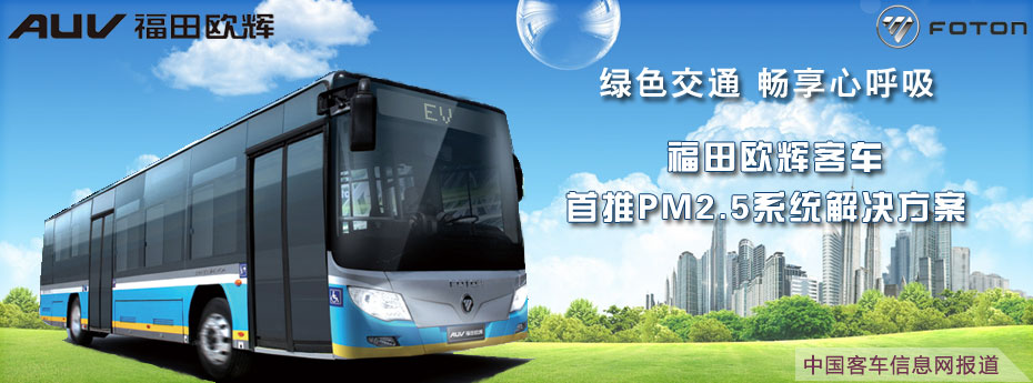 福田歐輝客車首推PM2.5系統(tǒng)解決方案12月7日,以“綠色交通 暢享心呼吸”為主題的福田歐輝北方六省市PM2.5系統(tǒng)解決方案山東綠色體驗(yàn)之旅在“風(fēng)箏之都”濰坊隆重舉行。會(huì)上,歐輝客車不僅推出了PM2.5系統(tǒng)解決方案,更以直觀體驗(yàn)的形式,向嘉賓展示了歐輝零PM2.5排放、低PM2.5排放系列客車在行業(yè)內(nèi)的領(lǐng)先優(yōu)勢。