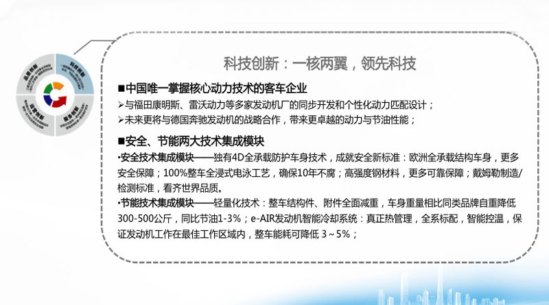 發(fā)布會(huì)上,福田汽車集團(tuán)副總裁、歐輝客車事業(yè)部總經(jīng)理解佃峰先生介紹:“人品+產(chǎn)品”,是福田歐輝當(dāng)下和未來(lái)業(yè)務(wù)的發(fā)展之路,正是有這種“責(zé)任、誠(chéng)信、感恩、追求進(jìn)步”的“歐輝人精神”,才能制造出“可靠、安全、節(jié)能、技術(shù)領(lǐng)先”的客車產(chǎn)品,才能從科技、品質(zhì)、運(yùn)營(yíng)管理和服務(wù)四個(gè)方面全方位、全范圍保障客車用戶企業(yè)的價(jià)值升級(jí)。