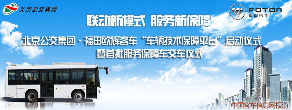 8月26日,北京公交集團(tuán)·福田歐輝客車“車輛技術(shù)保障平臺(tái)”啟動(dòng)儀式暨首批服務(wù)保障車交車儀式在北京舉行,活動(dòng)以“聯(lián)動(dòng)新模式服務(wù)新保障”為主題,會(huì)上,福田汽車首批贈(zèng)送北京公交集團(tuán)20輛福田蒙派克E級(jí)商務(wù)車,用于構(gòu)建和完善 “車輛技術(shù)保障平臺(tái)”體系的建設(shè)。作為福田歐輝首創(chuàng)的聯(lián)合公交公司共同打造“車輛技術(shù)保障平臺(tái)”體系的服務(wù)創(chuàng)新模式,必將為構(gòu)建高效、綠色、安全的城市交通循環(huán)系統(tǒng),打通關(guān)鍵一環(huán)。 [詳細(xì)]