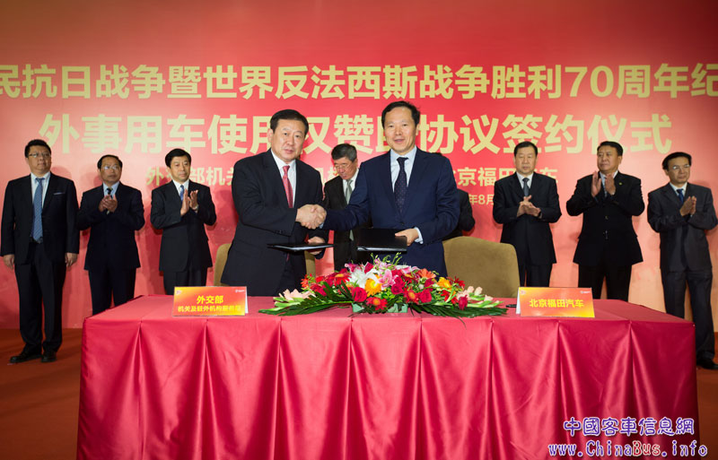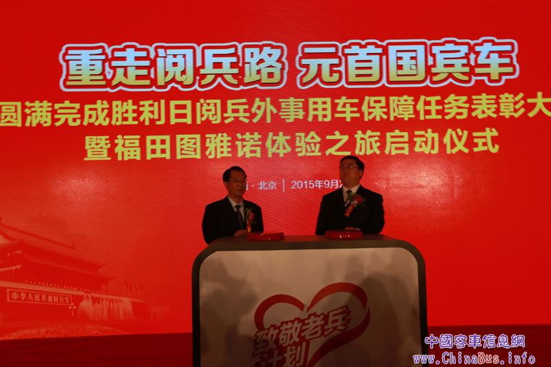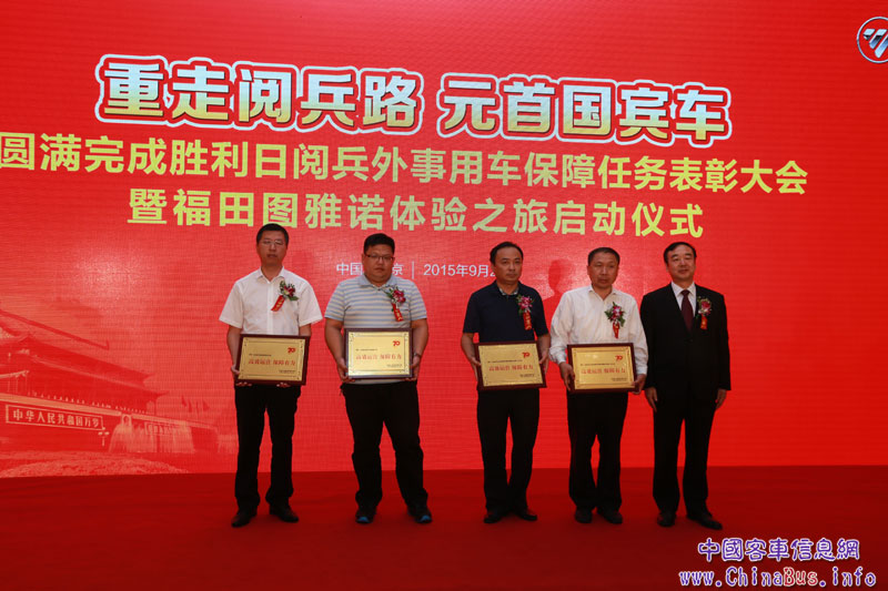 導(dǎo)讀:9月3日,在中國(guó)人民抗日戰(zhàn)爭(zhēng)暨世界反法西斯戰(zhàn)爭(zhēng)勝利70周年紀(jì)念活動(dòng)上,31位國(guó)家元首及19位政府高級(jí)別代表、10位國(guó)際和地區(qū)組織負(fù)責(zé)人全程乘坐全新一代元首國(guó)賓車——福田圖雅諾出行,成為全球萬(wàn)眾矚目的焦點(diǎn)。9月22日,“圓滿完成勝利日閱兵外事用車保障任務(wù)表彰大會(huì)暨福田圖雅諾‘致敬老兵計(jì)劃’體驗(yàn)之旅”活動(dòng)在北京人民大會(huì)堂舉行,表彰大會(huì)上,北京市人民政府外事辦公室分別對(duì)四大汽車租賃公司進(jìn)行了表彰,福田汽車獲“品質(zhì)過(guò)硬,保障有力”的榮譽(yù)稱號(hào)。 |