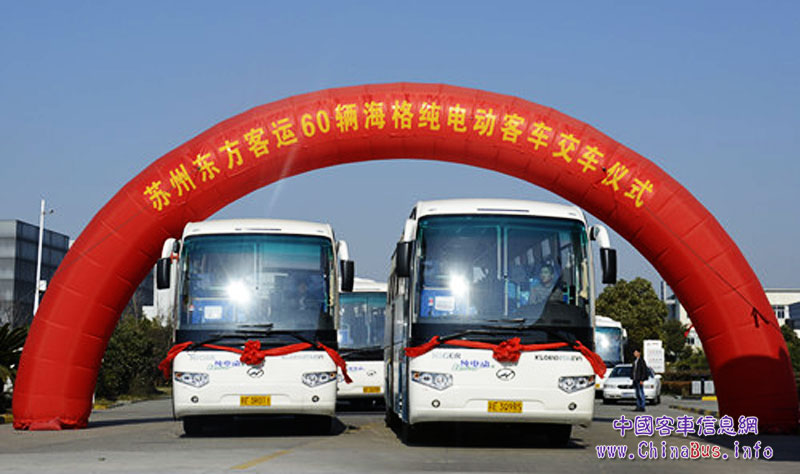 日前,海格60輛純電動(dòng)客車交付蘇州東方客運(yùn)公司,新車身長(zhǎng)10.49米、寬2.5米、高3.645米,內(nèi)設(shè)45個(gè)座位,快充約2小時(shí),滿電能開(kāi)150公里左右。至2014年底,該市還將在包車客運(yùn)行業(yè)再投放100輛純電動(dòng)大客車。[詳細(xì)]
