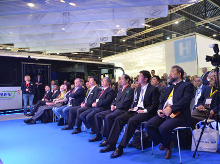 本年度大金龍參展主題為“Solution+”,寓意大金龍將在產(chǎn)品、服務、安全、節(jié)能等方面繼續(xù)發(fā)力,提供完美的客運系統(tǒng)解決方案。展會首日召開了新品發(fā)布會,重點推介E12及C9、B10三款符合歐六標準的精品客車,同時現(xiàn)場揭幕“金龍易驅插電式混聯(lián)系統(tǒng)運行原理”演示沙盤,這是中國自主電控系統(tǒng)首次海外亮相。