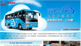 2014年5月14日,海格客車在北京國家會議中心發(fā)布“云戰(zhàn)略”,基于移動互聯(lián)網(wǎng)技術(shù)將智慧客車再次升級,帶來客車行業(yè)發(fā)展的全新變革。該戰(zhàn)略有眾多互聯(lián)網(wǎng)... 更多>>