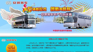 2009年,安凱客車有過了一個不平凡的年頭,面對由于金融危機和高鐵競爭的影響,安凱客車通過不懈努力,全年銷售取得了驕人的成績,產(chǎn)品質量和服務屢受用戶... 更多>>