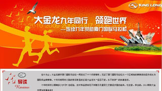 迄今為止,大金龍攜手廈門國際馬拉松一同走過了十個風雨春秋,見證了廈門國際馬拉松從一個區(qū)域性的賽事活動逐步成長為國際間金牌賽事。十年風雨同舟之路的背后... 更多>>
