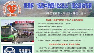 郫縣巴士公司500余名干部職工緊急動員和組織起來,積極投入抗震救災(zāi)工作中,每一位赴重災(zāi)區(qū)的搶險救災(zāi)突擊隊員,更是夜以繼日地投身救災(zāi)一線,為挽救生命轉(zhuǎn)... 更多>>