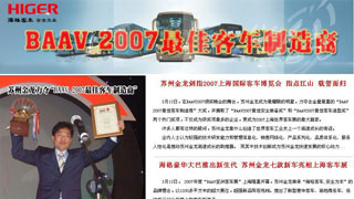 3月13日,在BAAV2007頒獎晚會的舞臺,蘇州金龍成為最耀眼的明星,力奪含金量最重的“BAAV 2007最佳客車制造商”大獎,并摘取了“BAA... 更多>>