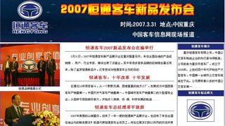 3月31日,2007年恒通客車新產(chǎn)品展示會在重慶隆重召開。來自全國各地的產(chǎn)品經(jīng)銷商 、用戶、行業(yè)專家、媒體出席了該盛會,其中有很多競爭品牌的經(jīng)銷商也... 更多>>