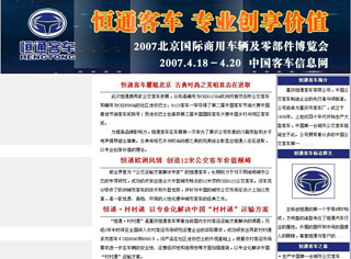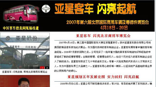 2007年4月18日,第三屆中國國際客車大賽在京隆重舉行,揚州亞星客車股份有限公司將攜四款精品客車參加此次展會。作為國內(nèi)資深的客車制造企業(yè),亞星客車... 更多>>