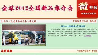 2012年5月29日,“品質(zhì)金旅 傳誠(chéng)萬里”金旅客車全國(guó)新品推介會(huì)首發(fā)儀式在天津舉行,就此拉開金旅2012年全國(guó)新品推介會(huì)序幕。據(jù)悉,本次巡展活動(dòng)計(jì)... 更多>>