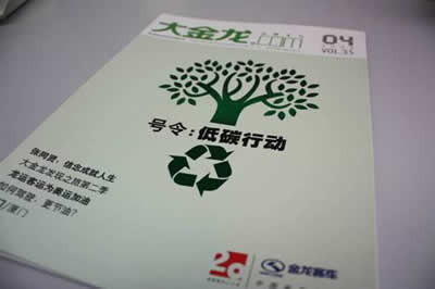 大金龍08年第4期內(nèi)刊封面上醒目的大字:“號令:低碳行動”
