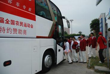 2008年10月26日,千年古港、海西名城泉州上演一場盛況空前的交響樂,第六屆全國過農(nóng)民運動會在泉州開幕。大金龍繼圓滿完成了北京奧運會賽事運輸保障任務(wù)后,再次擔(dān)當(dāng)重任,以“特約贊助商”身份派出旗下55臺豪華客車參與承擔(dān)本屆農(nóng)運會運輸保障工作。