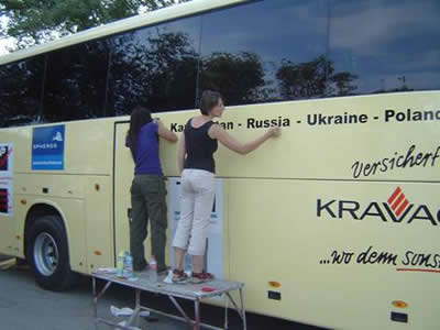 但喬治對(duì)此并不擔(dān)心,似乎胸有成竹,他說(shuō)“這是一個(gè)偉大的創(chuàng)意,我們要締造客車(chē)重走絲綢之路的第一品牌”,喬治解釋,通過(guò)陸路送達(dá)德國(guó),一來(lái)可以把它當(dāng)作一次耐力測(cè)試,充分檢驗(yàn)大金龍產(chǎn)品的品質(zhì),如果一切順利,這將對(duì)歐洲客戶產(chǎn)生較大震動(dòng),有助于他們改變對(duì)中國(guó)制造的不良印象,在他看來(lái),一輛經(jīng)受過(guò)考驗(yàn)的客車(chē)比一輛新車(chē)更能打動(dòng)客戶;同時(shí),這個(gè)舉動(dòng)還可以向途經(jīng)國(guó)家的客車(chē)用戶、乘客展現(xiàn)大金龍產(chǎn)品和品牌形象。為了增強(qiáng)車(chē)輛的傳播效果,喬治還準(zhǔn)備對(duì)展車(chē)做了一番裝飾,在側(cè)窗玻璃上貼上“ XIAMEN KINGLONG ENDURANCE TEST, FROM CHINA TO GERMENY ”(廈門(mén)金龍耐力測(cè)試——從中國(guó)到德國(guó))、途經(jīng)國(guó)家名稱以及主要配套商的商標(biāo)。