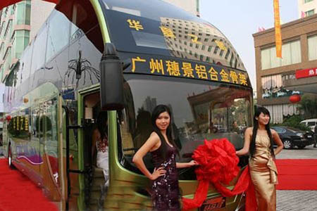 12月17日上午,世界首臺鋁合金、全承載、混合動力(使用汽油與電力混合動力)的雙層大巴汽車在南寧亮相,該車具有自主知識產(chǎn)權、科技含量居世界一流。