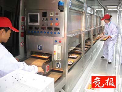 “奧運餐車”針對傳統(tǒng)配餐模式中存在的弊端進行了突破性設(shè)計,經(jīng)過150多項技術(shù)改造和多種技術(shù)組合,形成了全新概念的冷鏈配餐模式,即食品的采購粗加工等都是在無菌環(huán)境下進行的,餐車食品的加工全部采用機械化流水線模式進行。而使用微波殺菌,則可以在保證食物營養(yǎng)的基礎(chǔ)上保留色、香、味。