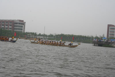 雖然此前上海天氣連續(xù)多日大雨,但在比賽開始前天空卻揚起了笑臉,露出了久違的陽光,為比賽的順利進(jìn)行提供了有利的天氣條件。隨著發(fā)號員的一聲令下,比賽正式開始,只聽見鞭炮炸響,鼓聲雷鳴,兩岸觀戰(zhàn)師生發(fā)出陣陣吶喊,為各自支持的參數(shù)隊伍加油鼓勁……經(jīng)過激烈角逐,同濟(jì)大學(xué)、上海財經(jīng)大學(xué)從18只參賽隊伍中脫穎而出獲得了本次比賽的一等獎。