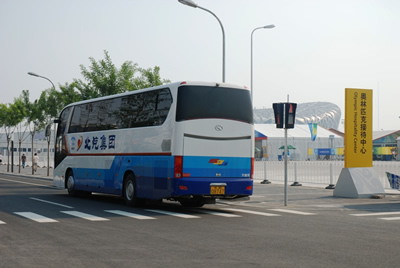 行駛在鳥巢周圍的大金龍龍威客車