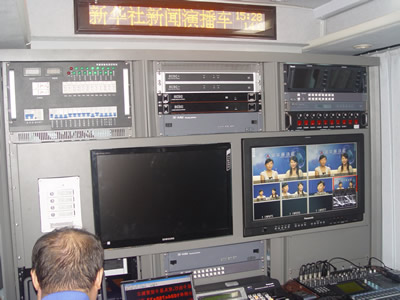據(jù)移動(dòng)演播車上的視音頻技術(shù)人員介紹,演播車配備了國際首創(chuàng)的車載現(xiàn)場實(shí)時(shí)高清晰度視音頻全數(shù)字新聞采集和制作(高清非編、三維特技)功能,大幅度提升高清晰度視音頻和圖片等新聞產(chǎn)品實(shí)時(shí)生產(chǎn)的技術(shù)能力。滿足移動(dòng)訪談、現(xiàn)場報(bào)道等多欄目的直播需求,保證和提升了新聞報(bào)道原創(chuàng)率、首發(fā)率和落地率。此外,演播車應(yīng)用了無線數(shù)字傳輸技術(shù),在國內(nèi)亦屬首次,因此將大幅提升我國媒體在實(shí)時(shí)報(bào)道方面與國際同行的競爭力。此前,在車輛提供方安凱客車舉辦的移動(dòng)演播車出征儀式上,新華社安徽分社常務(wù)副總編宋斌就曾表示,這部車運(yùn)用以后,新華社在視頻傳輸技術(shù)方面將遠(yuǎn)遠(yuǎn)超過國內(nèi)水平,處于世界同行業(yè)領(lǐng)先位置。