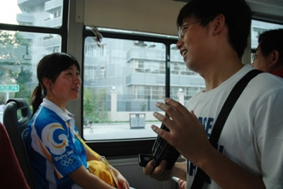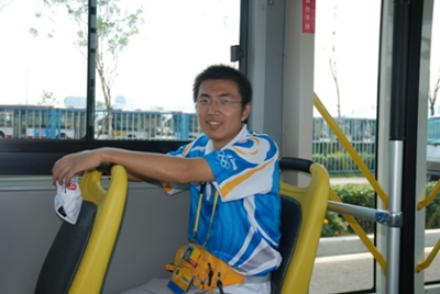 一位來自北京理工的大學(xué)生告訴筆者,他們每天都乘坐公交車往返于學(xué)校和場(chǎng)館之間,由于他們現(xiàn)在身份特殊,奧運(yùn)會(huì)期間他們將有2個(gè)月時(shí)間天天和公交車打交道,她對(duì)奧運(yùn)專線中的大金龍公交車非常滿意,感覺累了一天,坐著舒適、涼爽的公交車回學(xué)校就是一種享受。