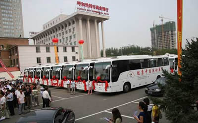 2008年8月20日上午,中國醫(yī)藥衛(wèi)生事業(yè)發(fā)展基金會捐贈內(nèi)蒙古流動醫(yī)院交接儀式在內(nèi)蒙古政府禮堂隆重舉行,衛(wèi)生部副部長陳嘯宏、中國醫(yī)藥衛(wèi)生事業(yè)發(fā)展基金會理事長王彥峰、內(nèi)蒙古自治區(qū)主席巴特爾、內(nèi)蒙古自治區(qū)黨委秘書長符太增、內(nèi)蒙古自治區(qū)副主席劉新東、內(nèi)蒙古衛(wèi)生廳廳長楊成旺、福田汽車總經(jīng)理王金玉、西部礦業(yè)集團有限公司董事長毛小兵等領導出席了捐贈儀式。在此次捐贈儀式上,中國醫(yī)藥衛(wèi)生事業(yè)發(fā)展基金會將福田汽車制造的14臺“健康中國流動醫(yī)院”專用醫(yī)療車捐贈給內(nèi)蒙古自治區(qū)政府。這是中國商用車第一品牌——福田汽車為內(nèi)蒙古自治區(qū)量身定制的第三代醫(yī)療專用車。至止,福田汽車已經(jīng)累計為內(nèi)蒙古自治區(qū)及新疆維吾爾自治區(qū)制造“流動醫(yī)院”專用醫(yī)療車20余輛。