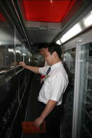 “安凱的改裝工作不僅僅是拆除座椅和平整地板這么簡單”,對記者關于安凱所做工作的問題,戴慶生做了詳細的解答“奧運配餐車以冷鏈運送、微波快速烹飪技術等為基礎,安凱 K40 車身內不僅要增加許多管線,而且要改動某些車體結構。這是一個極其艱苦的改裝過程,改裝時必須考慮發(fā)電機噪音、設備走向、風的循環(huán)方向、微波設備、監(jiān)控設備、溫度監(jiān)控設備等,而且要將這些設備累加到一起,不能相互排斥。我們總共做了 62 項改動,這些都凝聚著安凱人的智慧和汗水。”