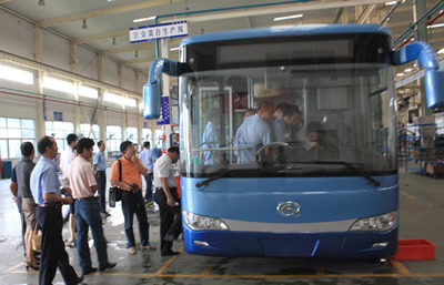 圖為,廈門公交公司司機到大金龍參觀在制BRT車。